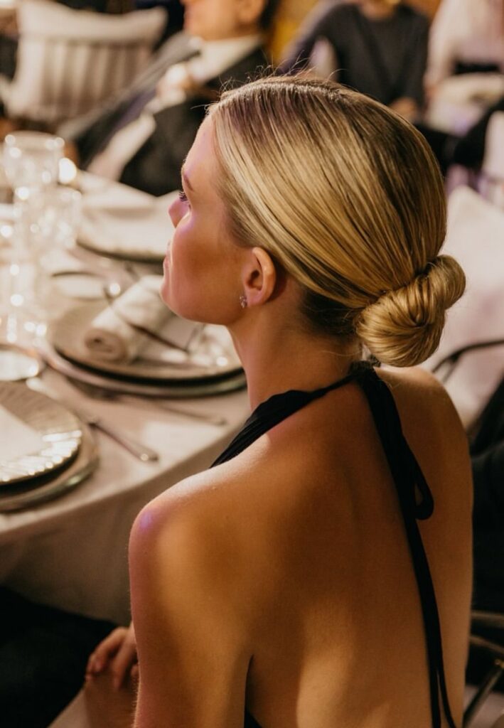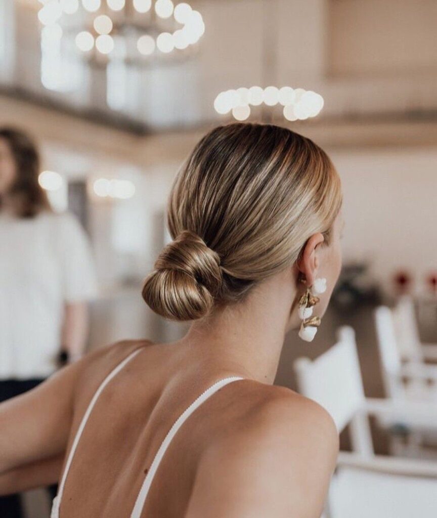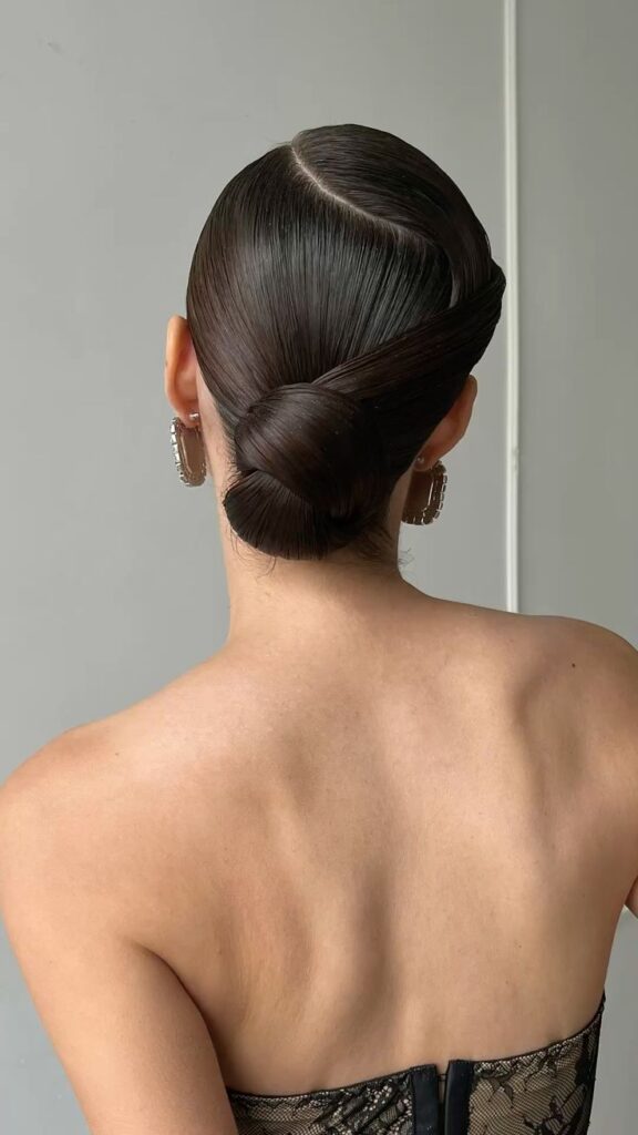 O coque baixo funciona como um penteado polido e elegante para ocasiões formais ou como versão despojada para o dia a dia. Posicionado na altura da nuca, ele carrega consigo uma referência vintage que remete aos anos 1920, trazendo sofisticação sem esforço para qualquer visual.