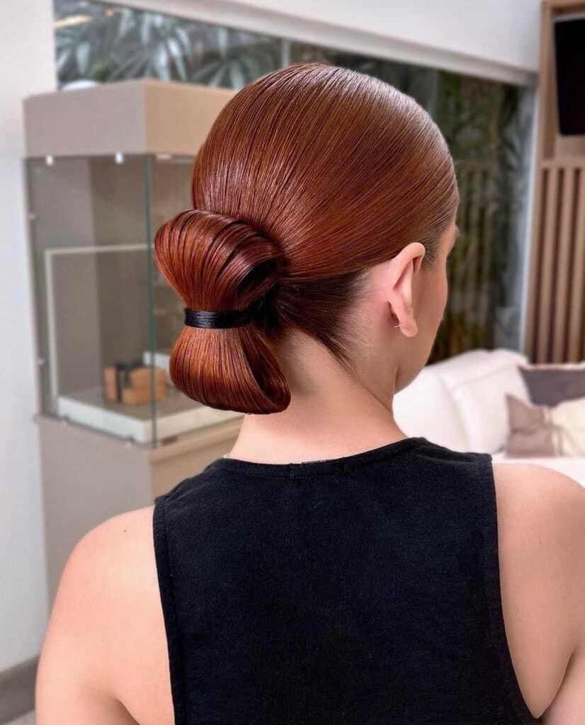 A execução desses penteados é surpreendentemente simples. Para fazer o coque baixo, escove os fios para trás formando um rabo de cavalo baixo, garantindo que nenhum fio fique solto ou fora do lugar. Em seguida, torça o comprimento dos fios e enrole ao redor da base do rabo de cavalo, fixando com grampos.